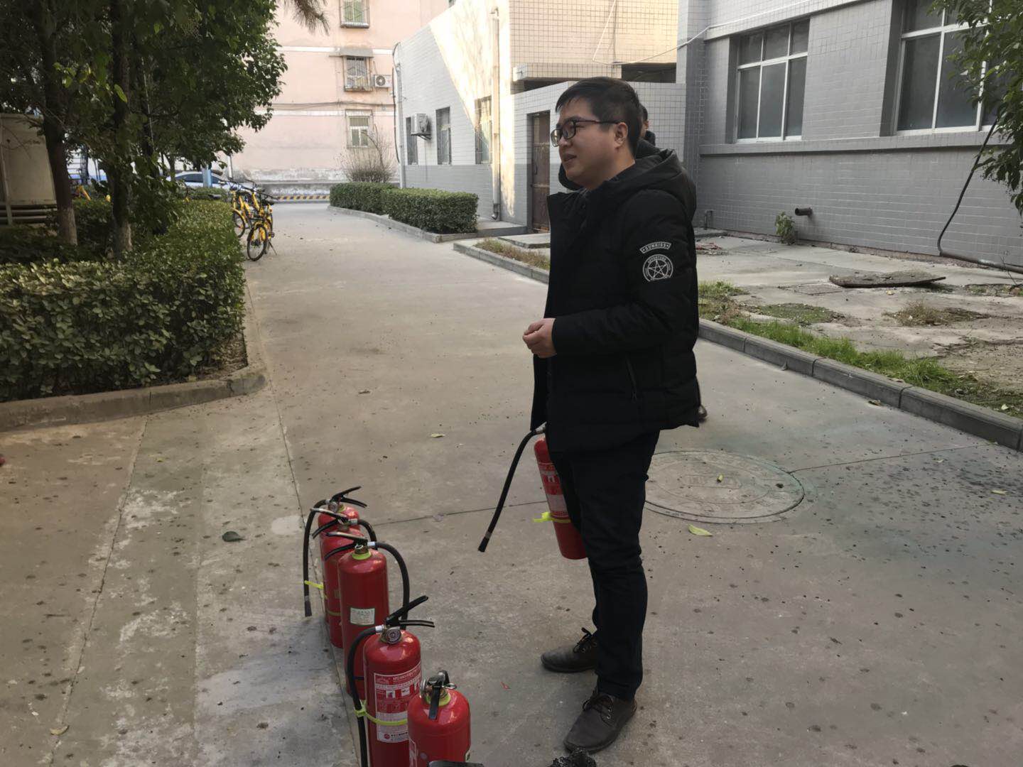 在演练活动开始前,陈克安副院长进行了简短的动员,介绍了本次演练活动的目的和具体要求。郑活勃老师对灭火基本常识、灭火器的正确使用以及如何快速、有效应对初期火灾等进行了详实、细致的培训。