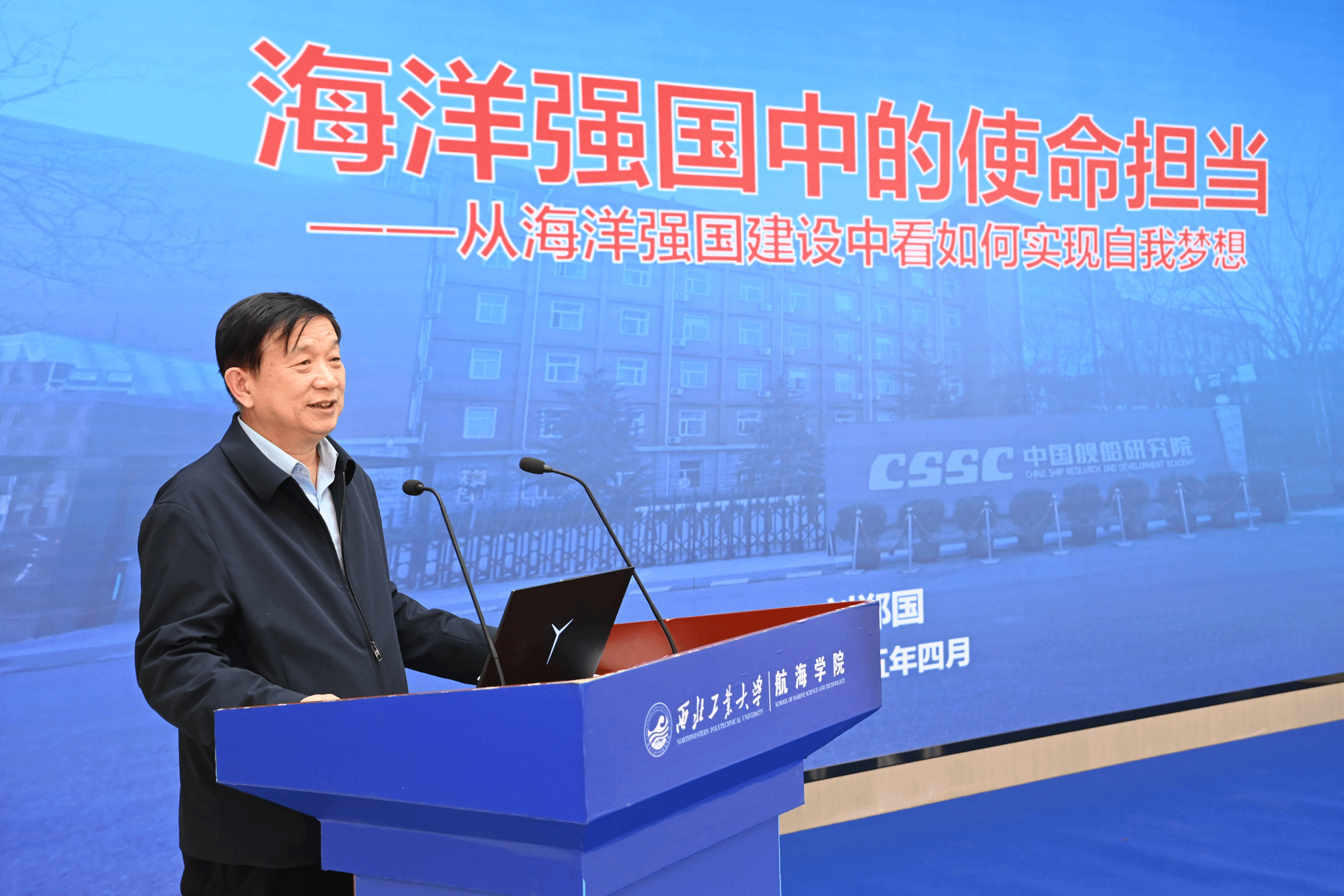 班级荣誉导师刘郑国结合自身丰富的科研与工作经历,分享了从海洋强国建设中看如何实现自我梦想。他提到,当代大学生是国家发展的宝贵资源,是民族的希望、祖国的未来,肩负着人民的重托、历史的责任,作为一名西工大学子,更应该肩负起国防建设的重任,努力学好文化知识,传承和发扬西工大“公诚勇毅”校训、“三实一新”校风,怀揣勇气与梦想,奋发图强,砥砺前行,努力在实现民族复兴中国梦的进程中绘制壮丽的青春图景。